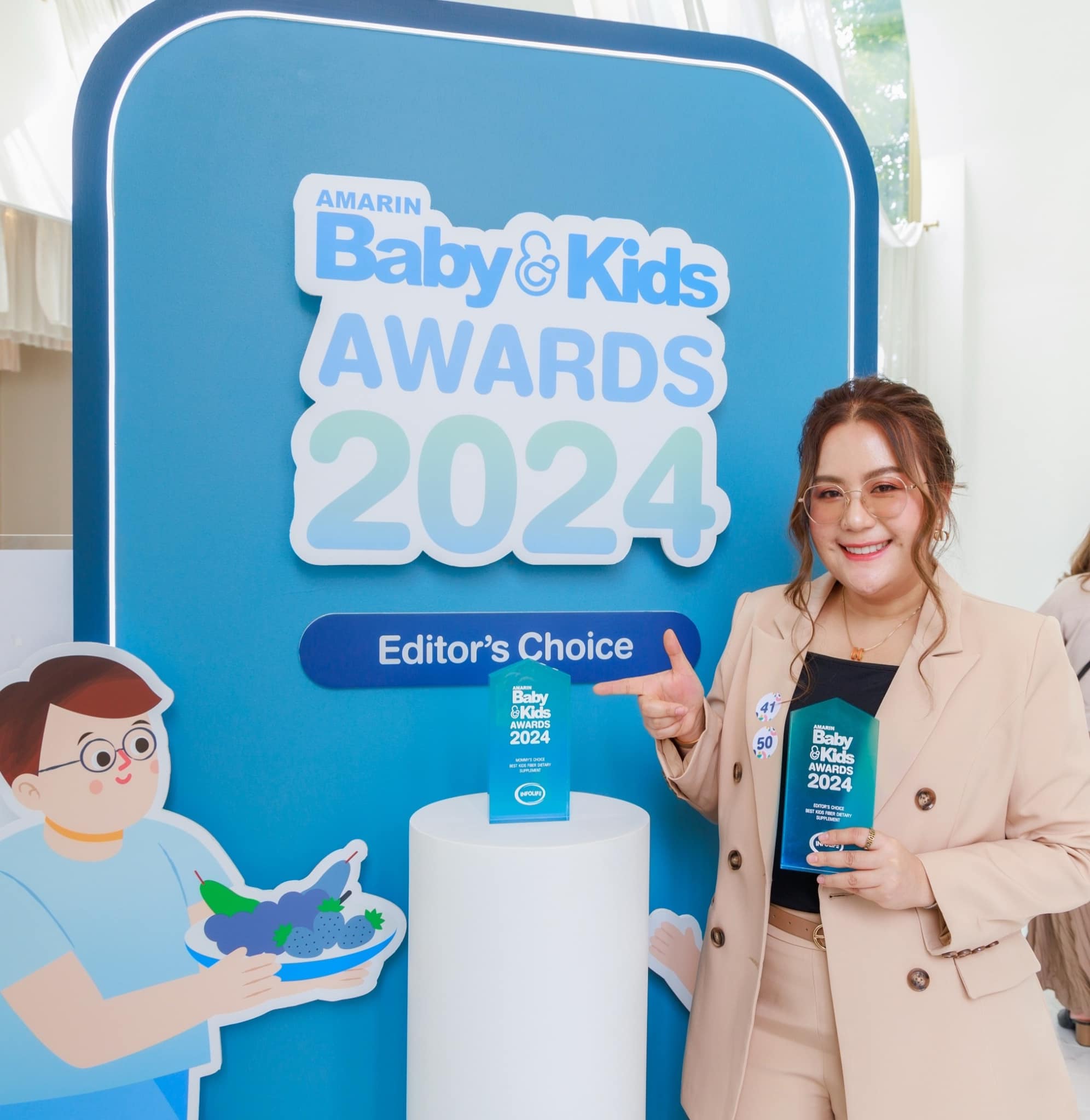 Editor's Choice: Best Kids Fiber Dietary Supplement: รางวัลอันทรงเกียรติที่มาจากมติของกองบรรณาธิการ Amarin Baby & Kids ซึ่งเป็นผู้เชี่ยวชาญด้านสินค้าเด็กที่มีประสบการณ์และความรู้เชิงลึก รางวัลนี้ตอกย้ำถึงคุณภาพ มาตรฐาน และประสิทธิภาพของผลิตภัณฑ์ไฟเบอร์สำหรับเด็กของอินโฟว์ไลฟ์ที่ได้รับการยอมรับในระดับมืออาชีพ